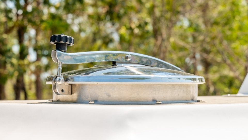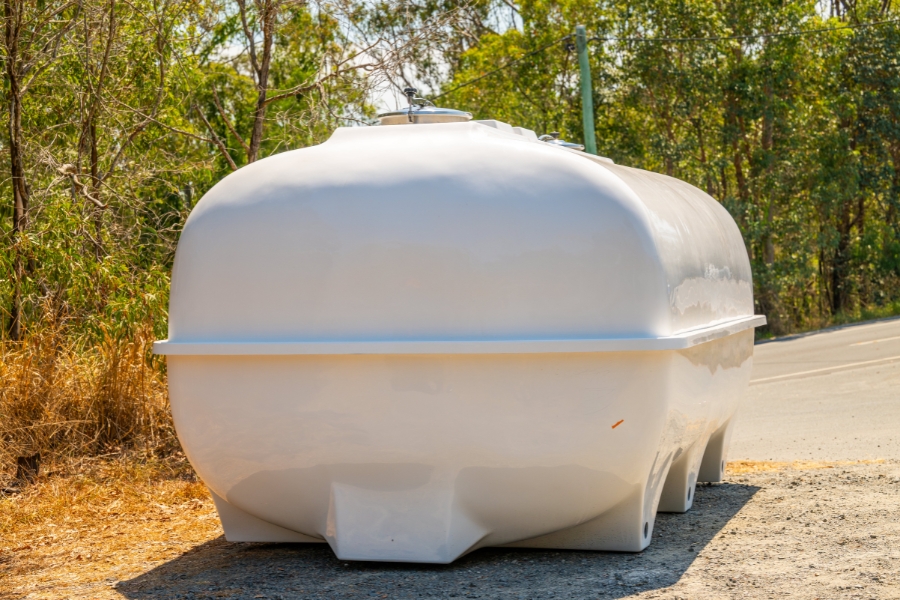 The white gelcoat finish helps reflect heat, keeping internal temperatures low, while the black internal lining blocks light to prevent degradation of stored liquids and eliminate algae growth.